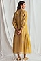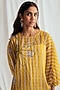 Featuring a yellow dress in chanderi base with embroidery. It is paired with a slip. Accentuate it with statement earrings, a sling bag and elegant heels for a stylish ensemble, ideal for evening soirees.