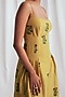 Featuring a yellow dress in cotton silk base with a square neckline and floral embroidery. Accentuate it with dangler earrings and heels for expressive evenings and statement occasions.
