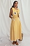 Featuring a yellow bib in kala cotton base with tie-up detail and embroidery. Style a bib over a crisp shirt, keep jewellery minimal, and style with sleek hair and flats. Perfect for brunch or festive day wear.