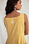 Featuring a yellow dress in kala cotton base with a sleeveless square neck, embroidery and block print. Accentuate it with dangler earrings and heels for expressive evenings and statement occasions.