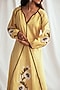 Featuring a yellow dress in kala cotton base with a V-neckline, raglan sleeves and embroidery. Accentuate it with statement earrings and heels for evening wear.