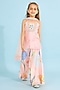 Featuring a peach tunic for girls in cotton chanderi base with print and mirror embroidery. It is paired with modal satin flared trousers and a viscose mesh stole. Style it with sandals and hair accessories for a complete look.