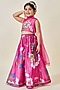 Featuring a pink lehenga for girls in cotton chanderi base with cancan and print. It is paired with an embroidered top and a soft net dupatta. Style it with hair accessories and sandals for a festive occasion or wedding ceremony.