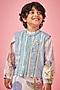 Featuring a white jacket for boys in cotton chanderi base with hand embroidery. It is paired with a printed kurta and trousers. Style it with mojris and a watch for any festive occasion or sangeet ceremony.