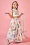 Featuring a white lehenga for girls in cotton chanderi base with an elasticated waist and print. It is paired with an embroidered cotton viscose top and a dupatta. Style it with hair accessories and sandals for a festive occasion or wedding ceremony.