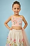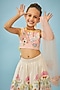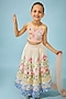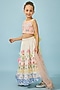 Featuring a white lehenga for girls in cotton chanderi base with an elasticated waist and print. It is paired with an embroidered cotton viscose top and a dupatta. Style it with hair accessories and sandals for a festive occasion or wedding ceremony.