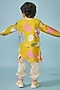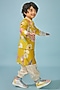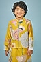 Yellow Cotton Chanderi Printed & Embroidered Jacket Set For Boys