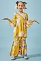 Featuring a yellow top for girls in cotton chanderi base with mirror embroidery and print. It is paired with printed trousers. Style it with cute hair accessories and sandals for birthday parties or evening gatherings.