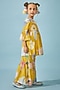 Yellow Cotton Chanderi Printed & Mirror Embroidered Co-Ord Set For Girls