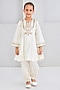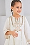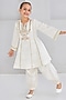Featuring an off-white tunic for girls in bemberg satin base with threadwork, dori, mirrorwork, pitta and cutdana embroidery. It is paired with trousers. Style it with cute hair accessories and sandals for a birthday party celebration or festive occasion.