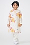 Featuring an off-white kurta for boys in cotton chanderi base with floral print and hand embellishment. It is paired with white pants. Accessorise it with pair of mojaris and a watch for a stylish ensemble, ideal for festive occasions or sangeet ceremony.