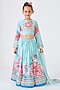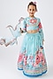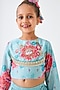 Featuring a turquoise lehenga for girls in cotton chanderi base with embroidery. It is paired with an embellished crop top and a soft net dupatta. Style it with sandals and hair accessories for a festive occasion or sangeet ceremony.