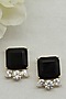 Gold Finish Black & White Synthetic Stone Stud Earrings