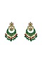 Featuring a gold finish enameled dark mint meenakari maang tikka studded with multi-colored beads, set in brass. It is paired with a matching pair of earrings. This set is perfect for a festive occasion or a wedding ceremony.