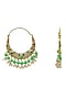 Gold Finish Pink Kundan & Beaded Chandbali Earrings