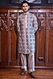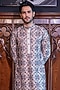 Featuring a beige kurta in cotton and chanderi base with ikat print and cross stitch embroidery. It is paired with pants. Perfect attire for any festive occasion or sangeet ceremony, exuding traditional charm and timeless elegance.