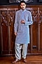 Featuring a powder blue kurta in cotton and chanderi base with print and embroidery. It is paired with salwar pants. Perfect attire for any festive occasion or sangeet ceremony, exuding traditional charm and timeless elegance.
