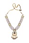 Featuring a gold finish necklace studded with agate beads, shell pearls, navratna stones, and hydro polkis, set in brass.