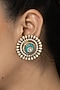 Featuring a pair gold finish stud earrings studded with aqua stones, set in brass. Add a touch of sparkle to your ensemble, perfect for festive occasions, weddings or sangeet ceremony.