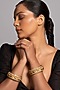 Featuring a gold finish bangle studded with kundan polki and semi precious stones, set in brass. This contains only one piece.