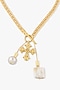 Featuring a gold finish ormaira necklace studded with baroque pearls, set in brass. It has a toggle clasp closure. Perfect wear for festive occasions or wedding ceremonies.