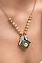 Gold Finish Beaded & Bird Engraved Pendant Necklace