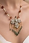 Gold Finish Beaded & Fringe Layered Bird Pendant Necklace