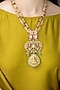 Featuring a gold finish pendant necklace studded with warm honey toned beads, set in brass. Ideal for festive occasions, weddings, or elevating your elegant evening look.