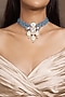Featuring a gold finish choker necklace studded with blue beads, set in brass. Perfect wear for festive celebrations or special occasions.