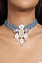 Gold Finish Blue Beaded Choker Necklace