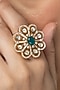 Featuring a gold finish floral ring studded with blue-green stone and diamonds, set in brass. Ideal for festive occasions, weddings, or elevating your elegant evening look.
