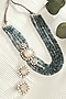 Gold Finish Blue & Grey Agate Stone Necklace Set
