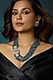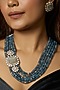 Featuring a pair of gold finish handcrafted necklace studded with hydro kundan polki, blue and grey agate stones, set in brass. It is paired with a matching pair of earrings.