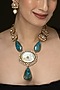 Gold Finish Blue Stone & Pearl Long Necklace Set
