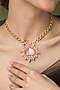 Gold Finish Blush Pink Stone Long Sunburst Pendant Necklace Set
