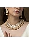 Featuring a gold finish necklace, set in brass. It is paired with a matching pair of earrings. Ideal for festive occasions, weddings, or elevating your elegant evening look.