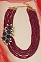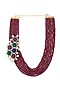Featuring a gold finish necklace studded with red agate beads, carved stones, and kundan polki, set in brass.