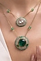 Gold Finish Emerald Green Stone & Mirror Pendant Necklace