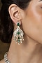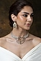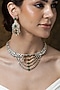 Featuring a gold finish necklace studded with emerald green stones, set in brass. It is paired with a matching pair of earrings. Add a touch of sparkle to your ensemble, perfect for festive occasions, weddings or sangeet ceremony.