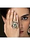 Featuring a gold finish ring studded with emerald and multi-colored bead drops, set in brass. Ideal for festive occasions, weddings, or elevating your elegant evening look.