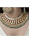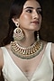 Featuring a gold finish necklace studded with flat-cut gemstones and teardrop stones, set in brass. It is paired with a matching pair of earrings. Ideal for festive occasions, weddings, or elevating your elegant evening look.