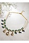 Gold Finish Green Agate & Pearl Enameled Pendant Necklace