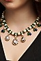 Featuring a gold finish enameled pendant necklace studded with green agates, pearls and polki, set in brass.