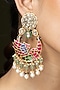 Featuring a pair gold finish enameled dangler earrings studded with green bead drops, set in brass. Add a touch of sparkle to your ensemble, perfect for festive occasions, weddings or sangeet ceremony.