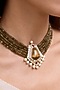 Gold Finish Green Beaded & Kundan Polki Layered Necklace Set