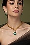 Featuring a gold finish long pendant necklace with green enamelling and heart link chain, set in brass. It is paired with a matching pair of earrings. Ideal for festive occasions, weddings, or elevating your elegant evening look.
