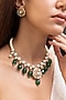 Gold Finish Green Gemstone & Kundan Polki Choker Necklace Set