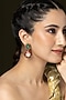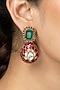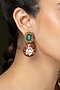 Featuring a pair gold finish dangler earrings studded with green and pink stones, set in brass. Add a touch of sparkle to your ensemble, perfect for festive occasions, weddings or sangeet ceremony.