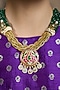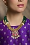Featuring a gold finish necklace studded with green and red gemstones, set in brass. It is paired with a matching pair of earrings. This necklace set radiates timeless elegance, perfect for wedding celebrations, festive soirees, cultural gatherings or evening events, adding a regal charm to every look.
