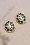 Gold Finish Green Stone Floral Stud Earrings